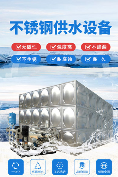 不銹鋼生活水箱特點:1、水箱模板采用高強度沖壓工藝制作成標(biāo)準板塊現(xiàn)場焊接而成;2、材質(zhì)選用SUS304食品級不銹鋼,具有較強的耐腐性;3、...